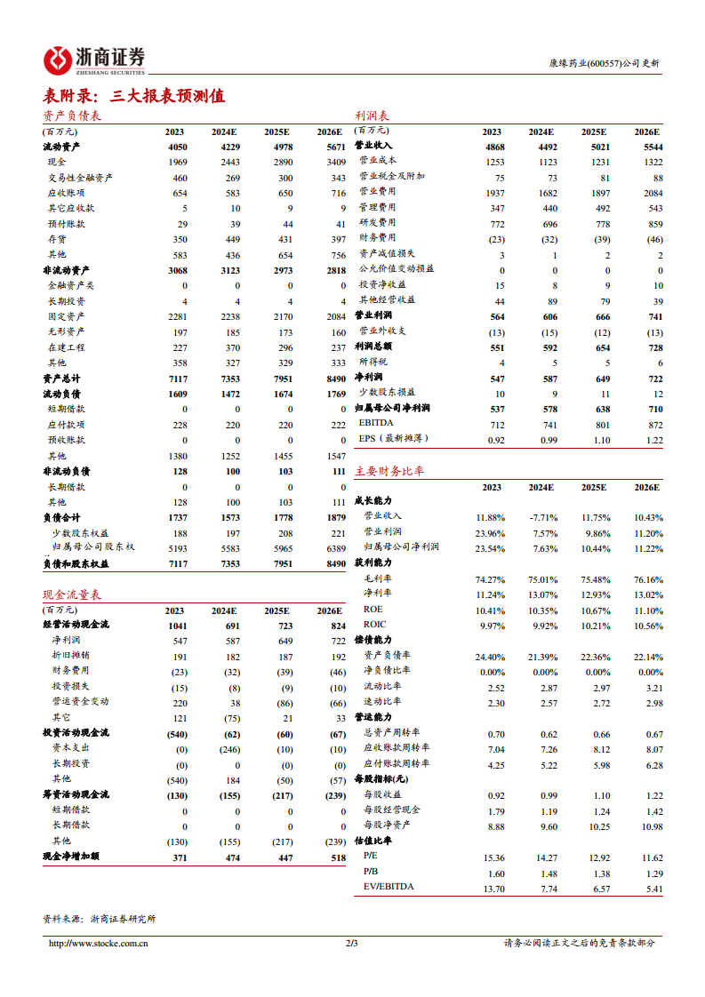 分析师维持康缘药业“买入”评级。预计公司2024-2026年归母净利润分别为5.78亿元、6.38亿元和7.10亿元,同比分别增长7.63%、10.44%和11.22%。对应的每股收益(EPS)分别为0.99元、1.10元和1.22元,市盈率(PE)分别为14.27倍、12.92倍和11.62倍。评级理由在于公司具备较强的研发实力和营销改革赋予的渠道活力。
