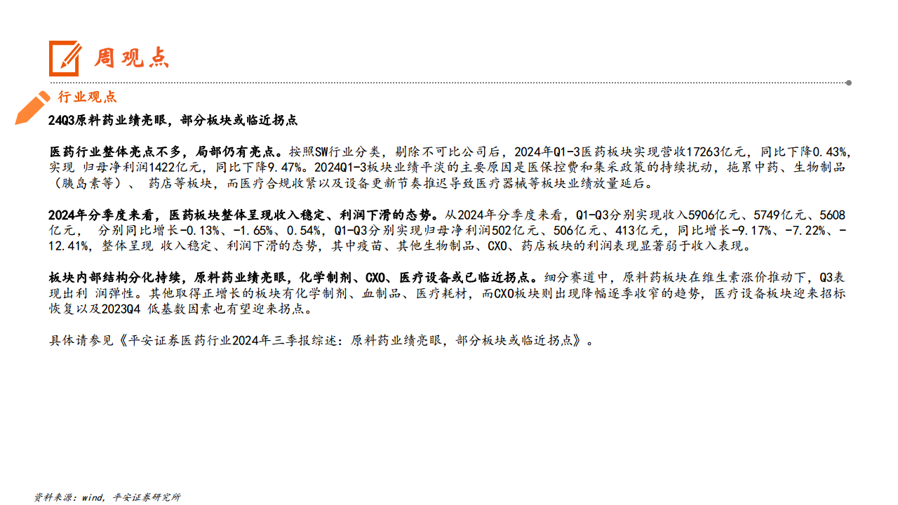 24Q3原料药业绩亮眼,部分板块或临近拐点
