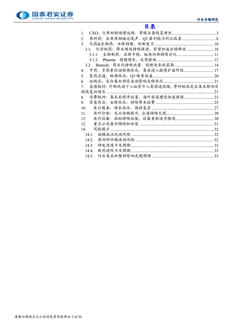 风险提示: 主要包括地缘政治扰动风险、原材料价格波动风险、研发进度不及预期、新药进院不及预期以及行业集采和整顿影响或超预期等。