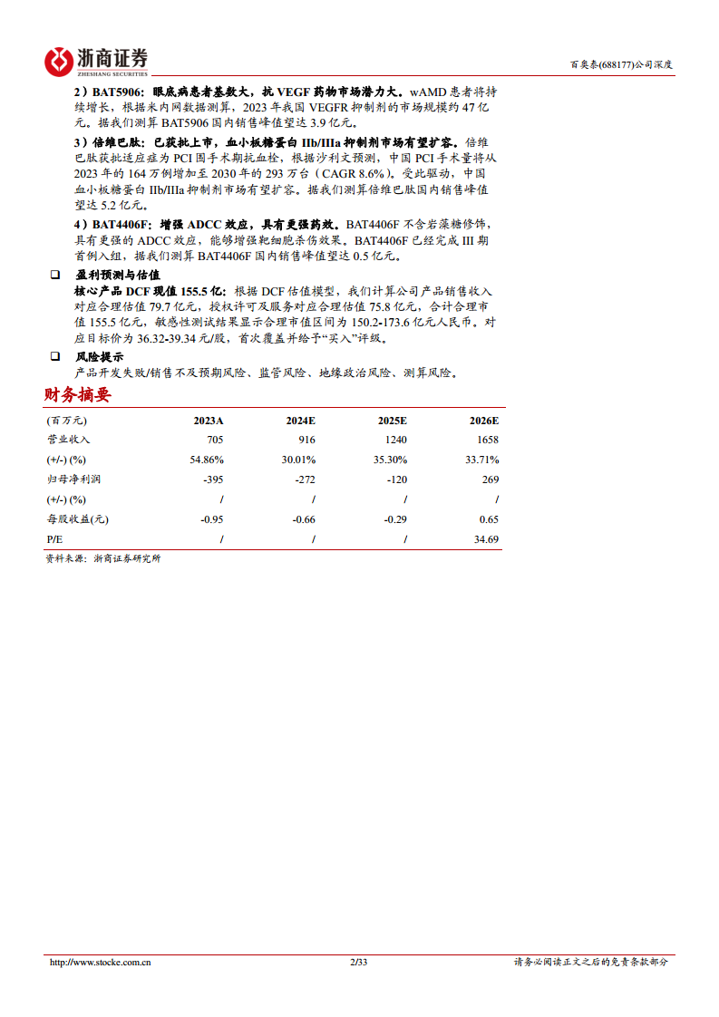 公司通过与百济神州、Sandoz等全球领先企业达成13项license out合作,有效拓展了海外市场,为产品放量奠定了坚实基础。财务数据显示,公司营业收入稳步增长,2023年达到7.05亿元,同比增长54.9%,且归母净亏损持续收窄,显示出良好的盈利改善趋势。基于对核心产品销售额和授权收入的预测,报告首次覆盖并给予“买入”评级,DCF估值模型显示公司合理市值达155.5亿元,预示着其未来业绩增长和价值提升的确定性。