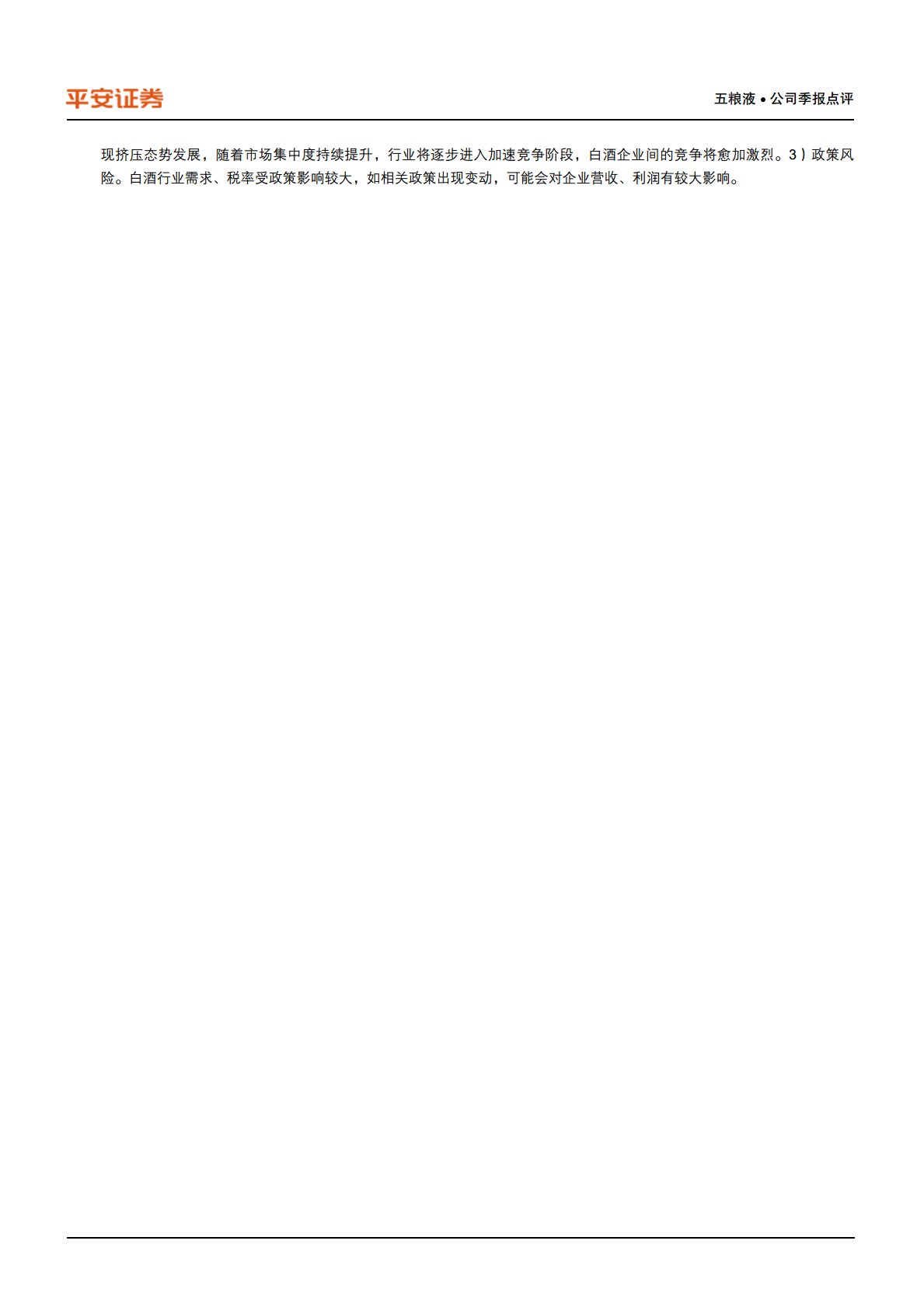 白酒行业的需求和税率受政策影响较大。报告指出,如相关政策出现变动,可能会对企业的营收和利润产生较大影响,构成潜在风险。
