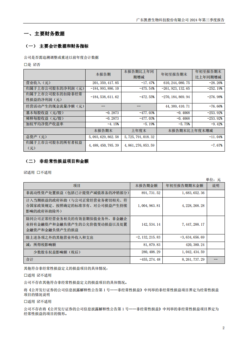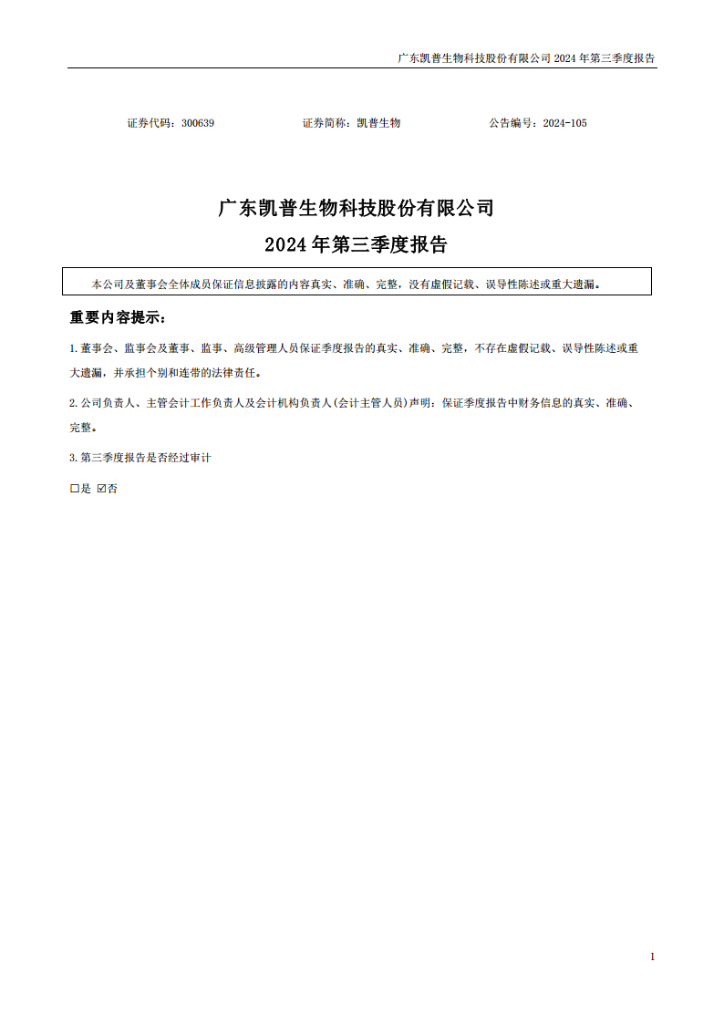 凯普生物2024年三季度报告