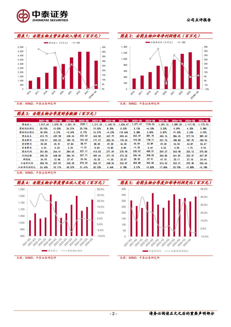 安图生物在多方压力下展现出稳健的业绩韧性,2024年前三季度营业收入和归母净利润均实现同比增长。尽管诊断试剂集采和医疗整顿等政策带来短期挑战,公司凭借其常规业务的持续放量和高端设备的有效布局,成功抵御了市场波动。展望未来,随着相关政策的全面落地和短期压力的充分释放,公司各项业务有望逐步迎来加速增长的拐点。