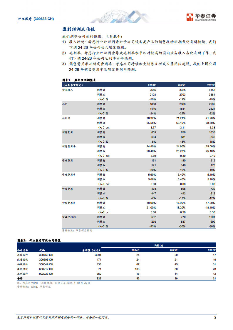 开立医疗在2024年前三季度业绩表现不佳,收入和归母净利润均出现同比下滑,第三季度更是转为亏损。这主要是受到国内医疗行业整顿、设备更新政策落地前的市场观望情绪以及公司为长期发展而增加销售和研发投入的综合影响。尽管短期承压,但报告对公司未来发展持积极态度,认为随着院内医疗设备采购需求的明确和设备更新政策的加速落地,公司有望在2025年重回较快增长轨道。彩超和内窥镜作为核心业务,凭借其丰富的产品线、市场领先地位和持续强化的推广策略,预计将在需求回暖后实现增长。华泰研究基于对市场环境和公司投入的最新评估,下调了未来三年的盈利预测,但仍维持“买入”评级,并设定了40.93元的目标价,体现了对公司长期竞争力和增长潜力的信心。投资者需密切关注下游销售、政策推进及汇率波动等潜在风险。