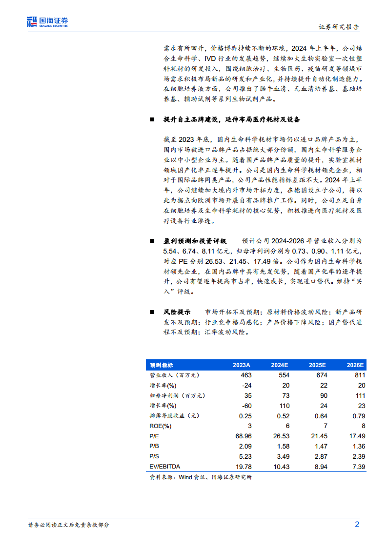 公司持续加大在细胞培养类及液体处理类生命科学耗材领域的研发投入,积极布局细胞治疗、生物医药等前沿领域的新品研发与产业化,并不断提升自动化制造能力。作为国内生命科学耗材的领先企业,洁特生物凭借其与国际品牌相媲美的产品性能和先发优势,有望在国产替代进程中进一步扩大市场份额。同时,公司通过设立德国子公司拓展欧洲市场,并向医疗耗材及设备领域延伸,展现出其全球化和多元化的战略视野。