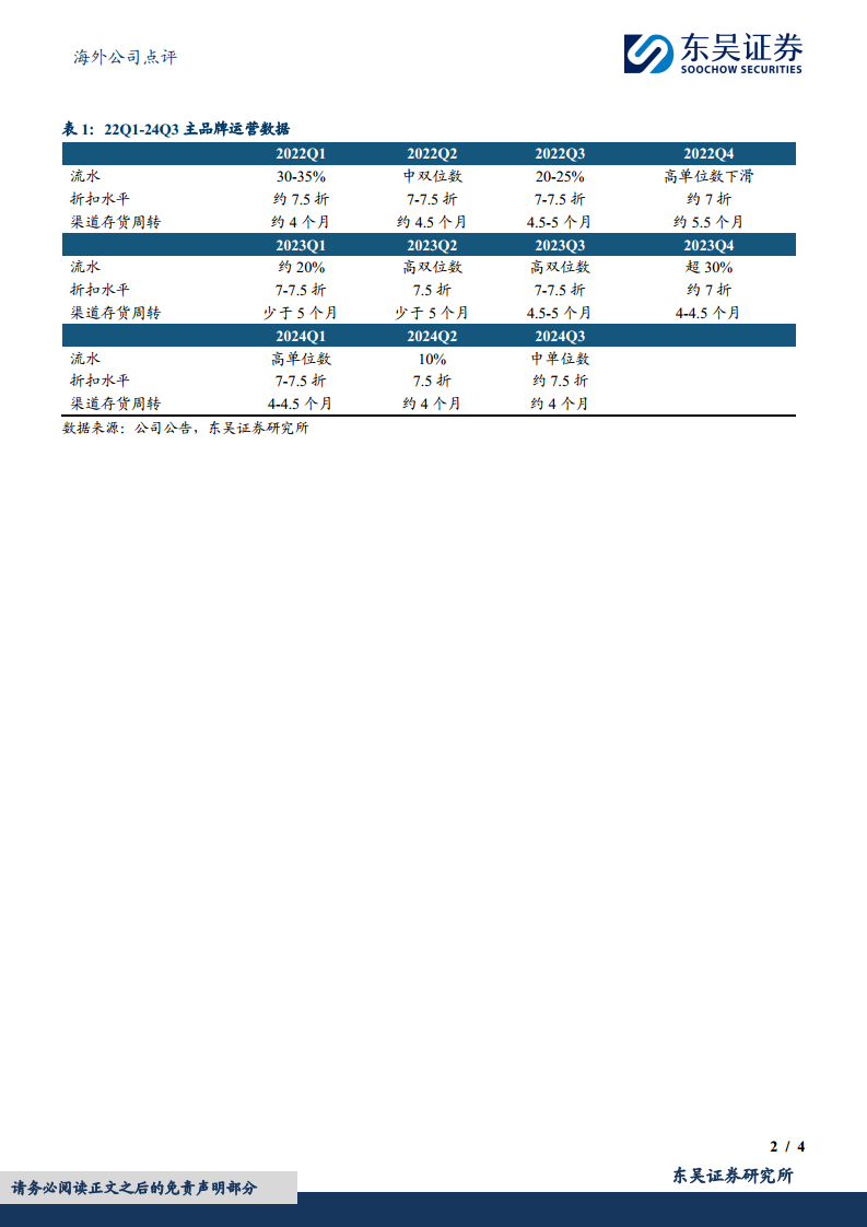 公司积极推进K&P品牌的剥离计划,并持续实施降本增效措施,预计将进一步优化盈利结构和提升利润率。尽管短期内主品牌流水增速不及预期,但分析师基于公司在运营质量、成本控制和品牌组合优化方面的积极表现,维持“买入”评级,并对未来几年的归母净利润预测进行了调整,认为公司具备长期增长潜力。