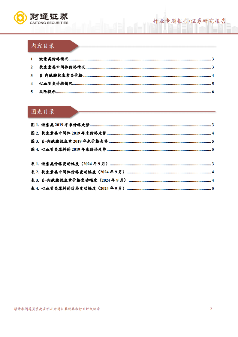 本报告对2024年9月医药生物行业主要原料药的价格情况进行了专业分析。数据显示,当月各类原料药价格环比普遍稳定,但同比表现差异显著。激素类中的地塞米松磷酸钠、皂素和双烯价格同比大幅上涨,而抗生素类中间体中的4-AA、6-APA和青霉素工业盐以及β-内酰胺抗生素类和心血管类原料药的多数品种则呈现同比价格下降的趋势。市场参与者需密切关注价格波动、行业竞争加剧以及行业政策变化等风险因素。
