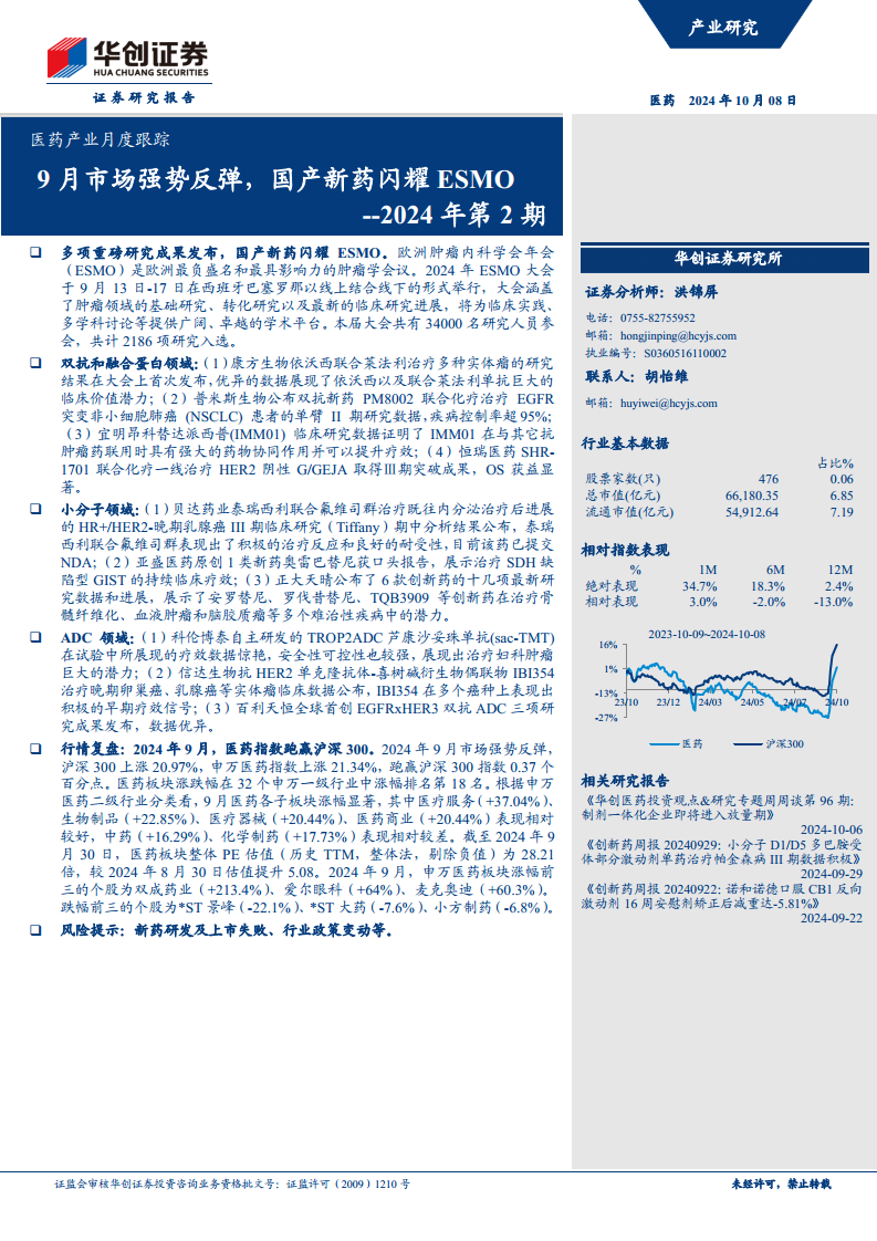 医药产业月度跟踪2024年第2期:9月市场强势反弹,国产新药闪耀ESMO