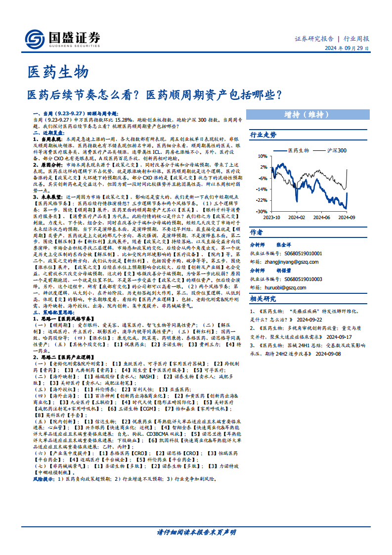 医药生物行业周报:医药后续节奏怎么看?医药顺周期资产包括哪些?