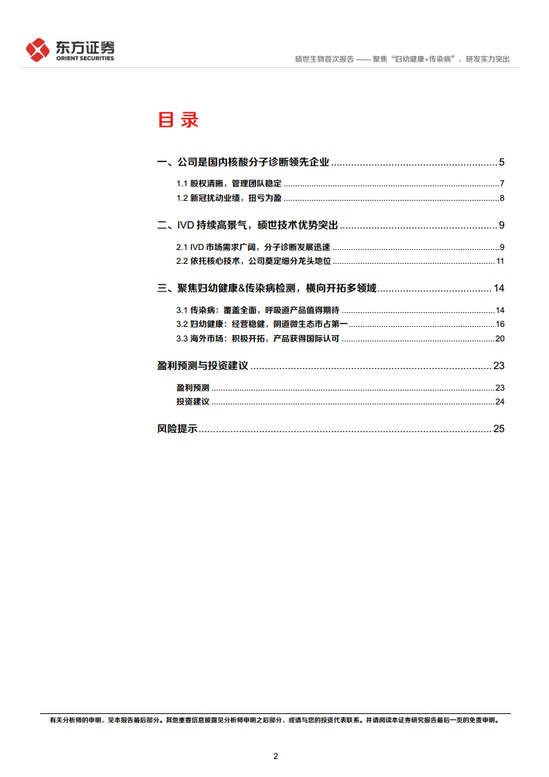 硕世生物作为国内核酸分子诊断领域的领先企业,凭借其深厚的研发实力和五大核心技术平台,在体外诊断市场中占据重要地位。公司战略聚焦妇幼健康和传染病检测两大高增长领域,不仅在国内市场表现稳健,尤其在阴道微生态评价系统和HPV检测方面处于领先地位,同时积极拓展海外市场,其猴痘和登革热检测产品已获得国际广泛认可。尽管曾受新冠业务扰动,但公司通过精益化运营和费用控制,2024年上半年常规业务实现增长并成功扭亏为盈,盈利能力显著改善。面对广阔的IVD市场需求,硕世生物的技术优势、全面的产品布局和持续优化的运营能力,预示着其长期发展潜力。报告预测公司未来几年业绩将持续增长,并首次给予“增持”评级,目标价格86.57元,但投资者仍需关注销售推广、研发进度、带量采购政策及费用控制等潜在风险。