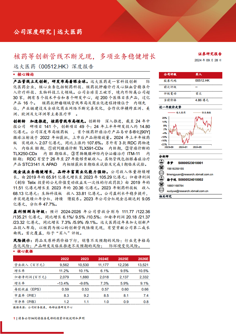 远大医药(0512.HK)深度报告:核药等创新管线不断兑现,多项业务稳健增长