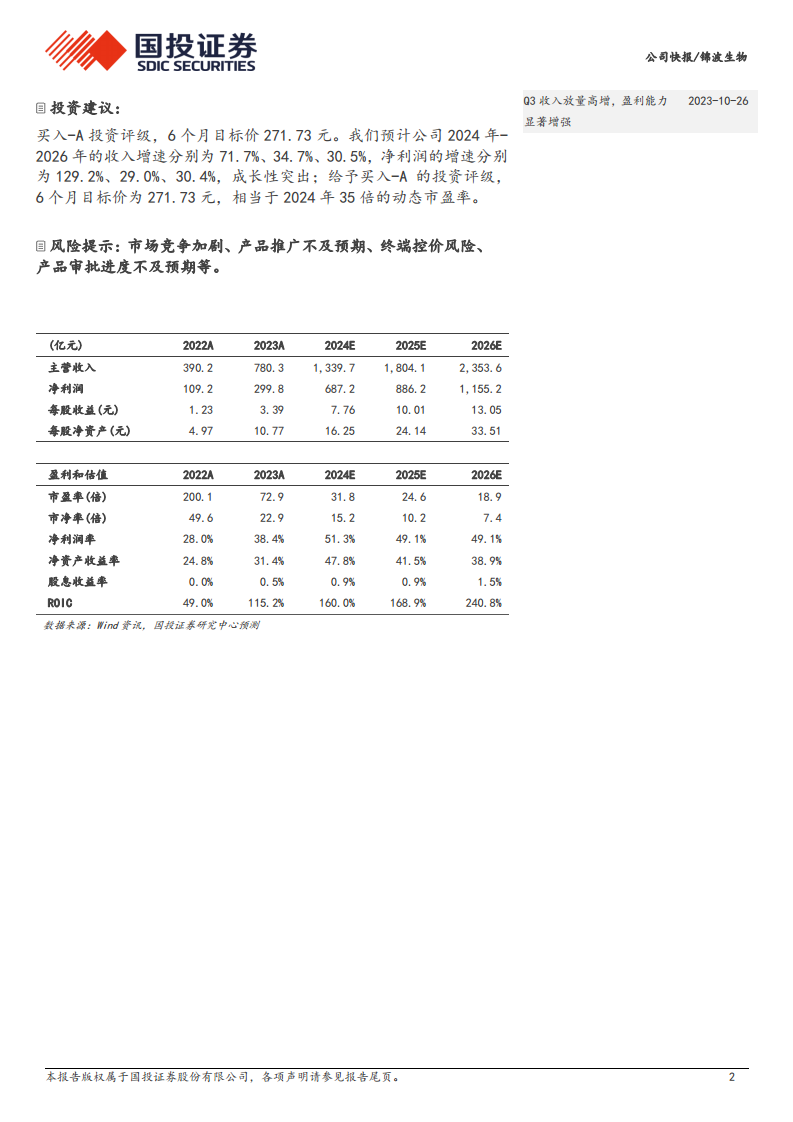 锦波生物在2024年第三季度展现出卓越的财务表现,营业收入和归母净利润均实现高速增长,尤其在医疗器械领域表现突出。公司盈利能力显著提升,毛利率和净利率双双走高,同时通过精细化管理有效优化了各项费用率。在战略层面,锦波生物积极发挥中国原创科技的引领作用,其重组人源化胶原蛋白产品在生物材料和化妆品原料市场取得显著创新成果和市场认可。通过深化产学研合作,公司持续强化技术创新能力和核心竞争力。国投证券维持“买入-A”评级,并基于对公司未来收入和净利润的乐观预测,给出了明确的目标价,凸显了其强劲的成长潜力和投资价值。尽管面临市场竞争、产品推广和审批等风险,锦波生物凭借其强大的研发实力、优化的运营效率和前瞻性的市场布局,有望在生物医药和化妆品赛道持续保持领先地位。
