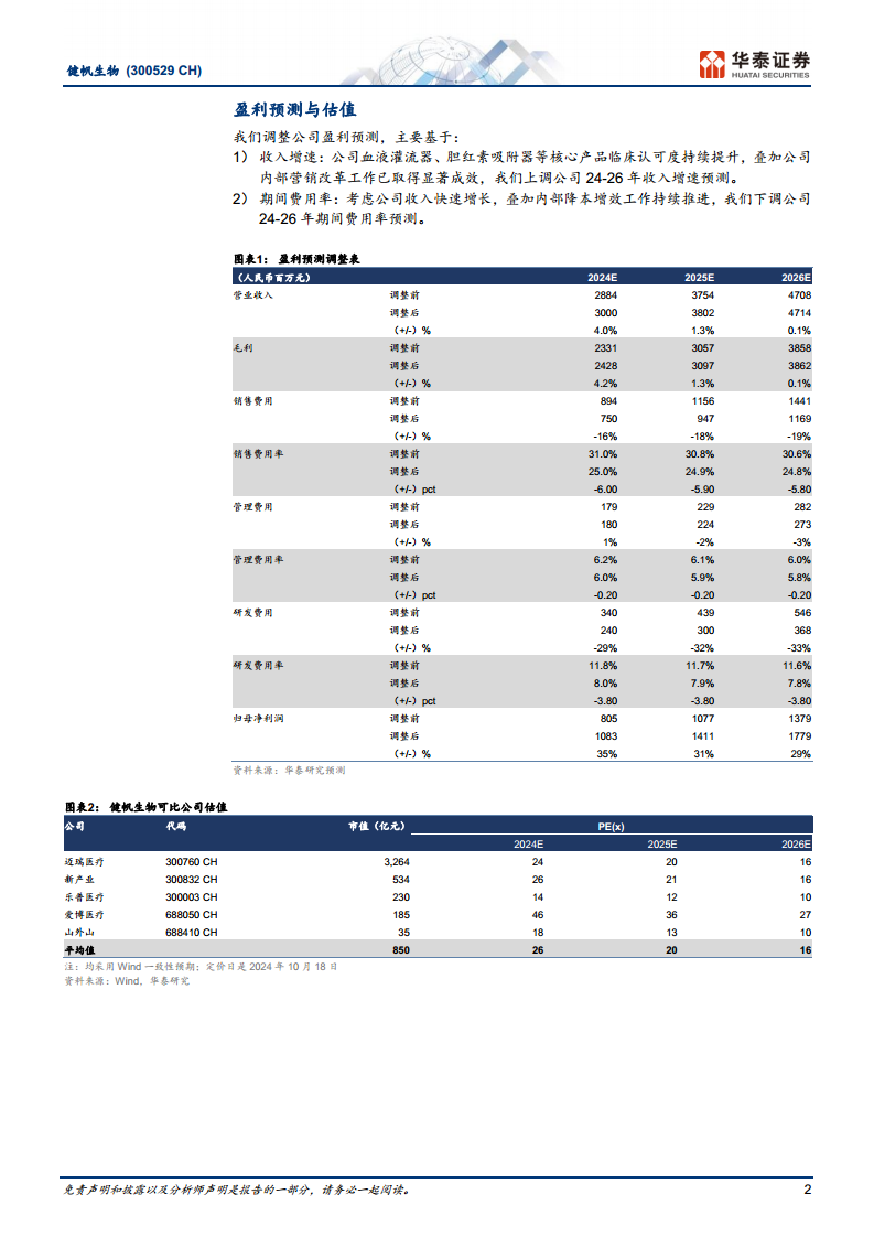 基于公司强劲的业绩表现和持续优化的经营策略,分析师对健帆生物的盈利预测进行了上调。
