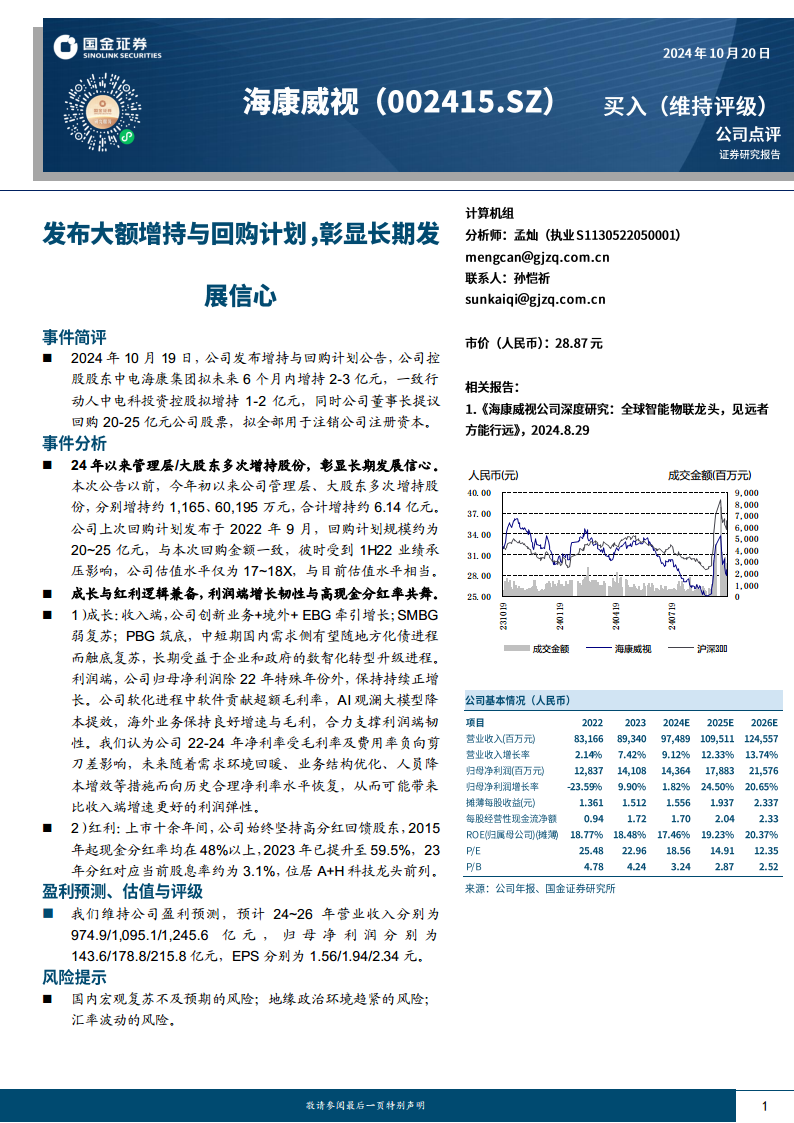 海康威视(002415):公司点评:发布大额增持与回购计划,彰显长期发展信心