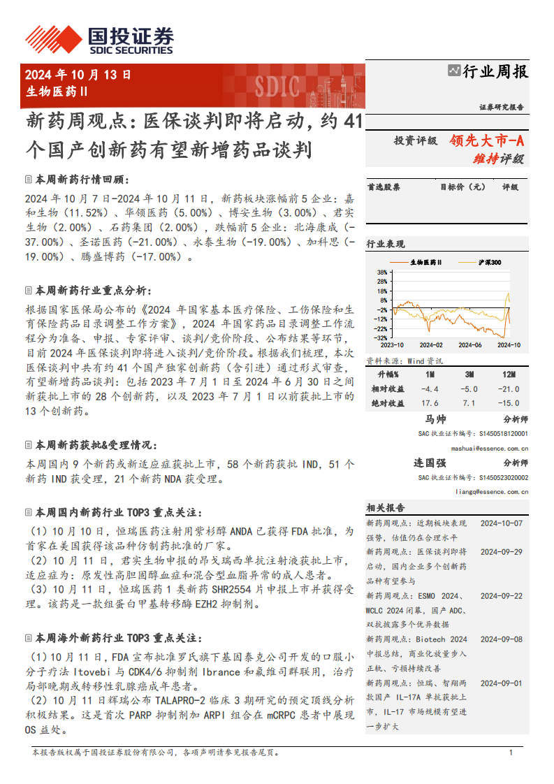 新药周观点:医保谈判即将启动,约41个国产创新药有望新增药品谈判