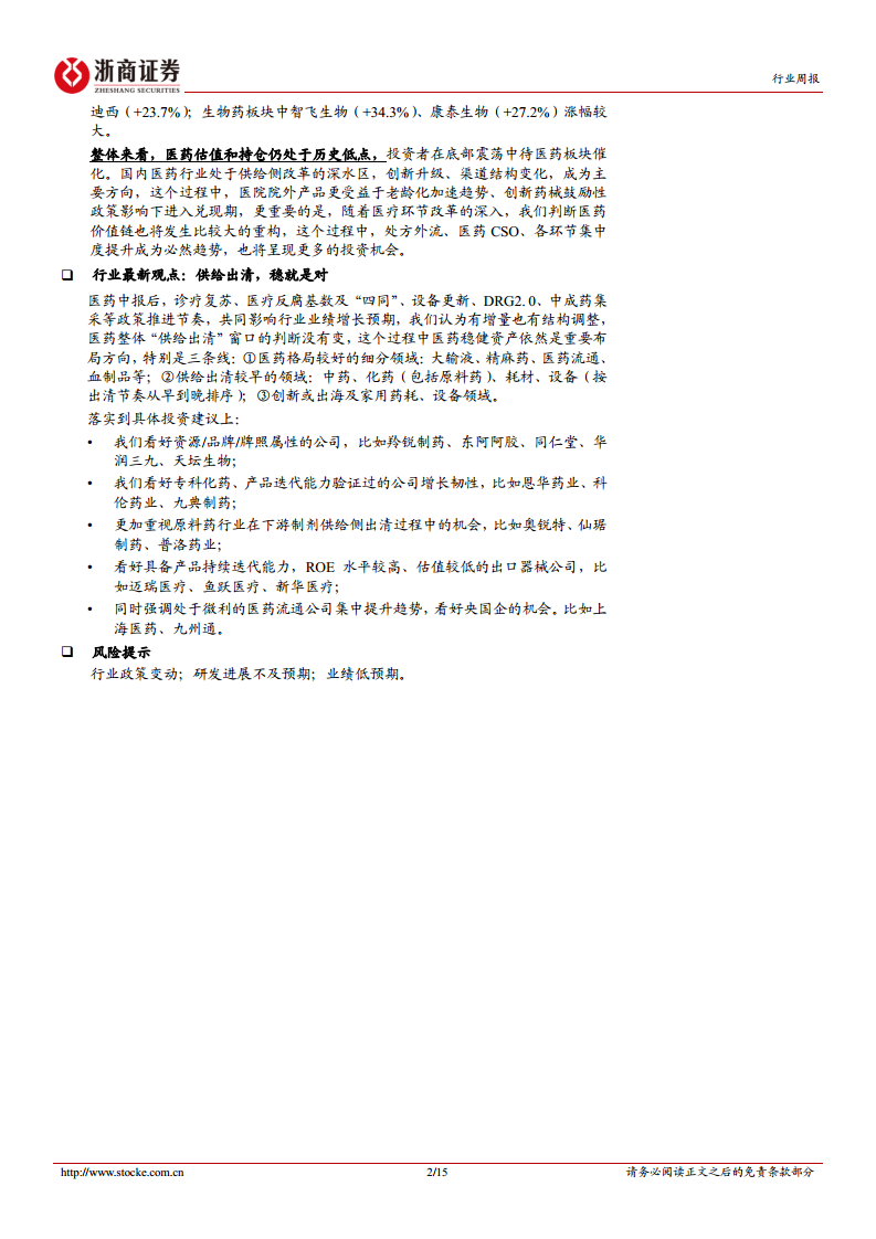 报告提示投资者关注行业政策变动、研发进展不及预期以及业绩低预期等风险。