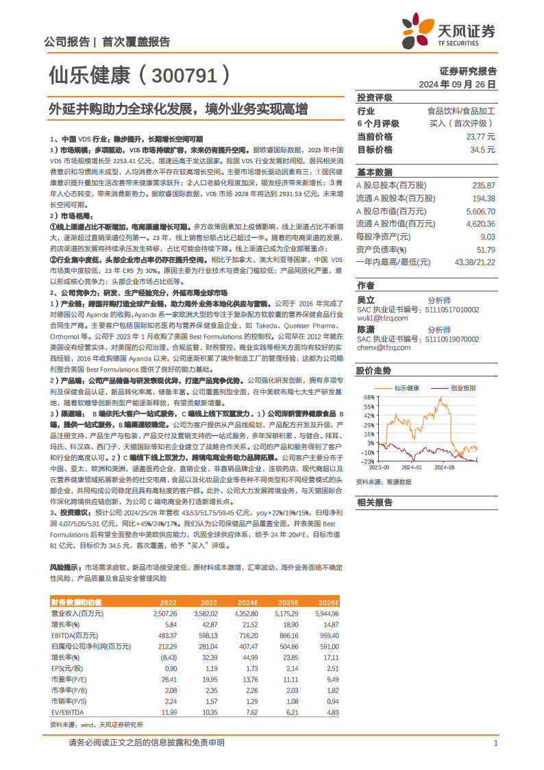 中国膳食营养补充剂(VDS)市场规模持续扩容,在国民健康意识提升、人口老龄化加深及青年消费新势力等多重驱动下,展现出巨大的长期增长空间。尽管行业集中度较低且竞争加剧,但线上渠道的崛起和政策趋严正促进行业整合。仙乐健康凭借其在研发、生产、供应链和多元化渠道(B端大客户一站式服务与C端线上线下双发力)的强大竞争力,有望在中国及全球VDS市场中进一步提升市场份额和盈利能力。