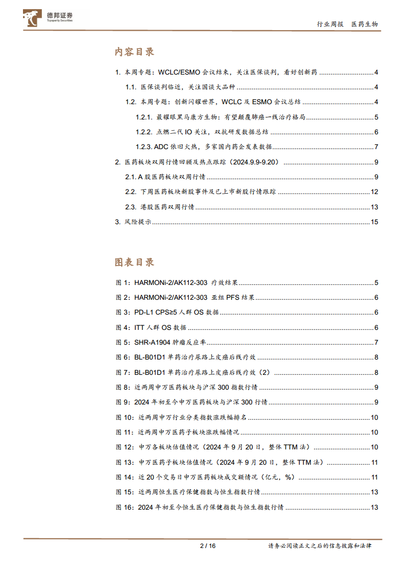 本报告核心观点指出,随着国家医保谈判的临近以及WCLC/ESMO等国际学术会议上中国药企创新成果的集中亮相,医药行业正迎来结构性行情。创新药,特别是肿瘤治疗领域的双抗和ADC药物,展现出颠覆性潜力,成为市场关注的焦点。
