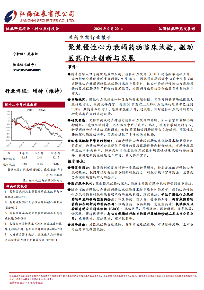 医药生物行业报告:聚焦慢性心力衰竭药物临床试验,驱动医药行业创新与发展