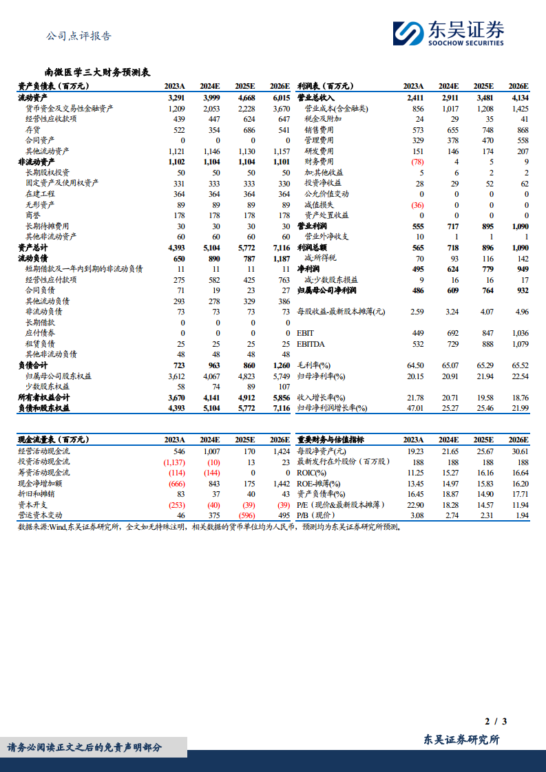 分析师维持了对南微医学2024-2026年的归母净利润预测,分别为6.09亿元、7.64亿元和9.32亿元。基于当前市值,对应的PE估值分别为18倍、15倍和12倍。考虑到公司在海外市场推广的顺利进展以及此次收购带来的协同效应,分析师维持了对南微医学的“买入”评级。