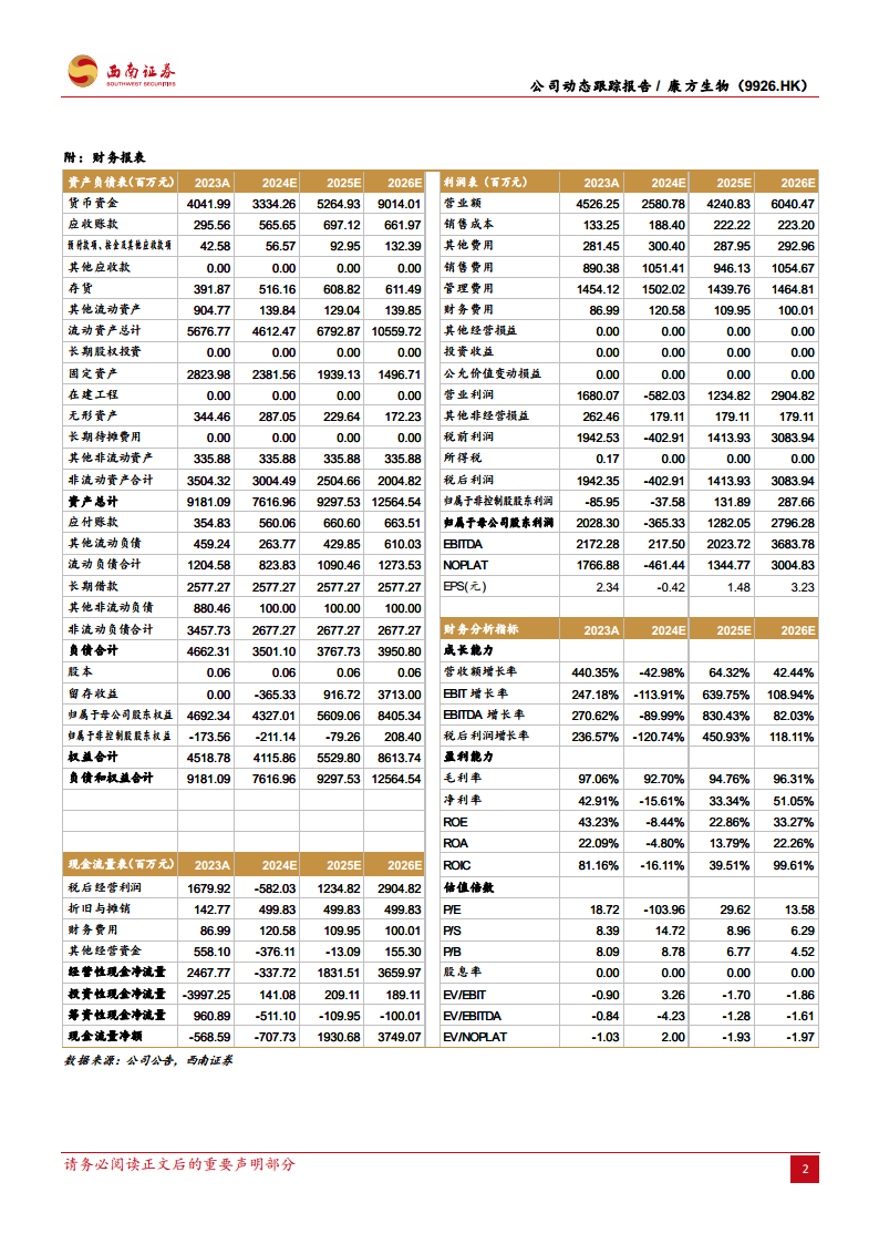 除了依沃西的亮眼表现,公司核心产品卡度尼利在2024年上半年实现了7.1亿元的收入,并持续拓展一线宫颈癌及一线胃癌等适应症。依沃西上市首月即实现1亿元收入,展现出强劲的市场导入能力。同时,公司在肿瘤及自免领域持续推进多项创新产品的临床开发,构建了多元化的产品管线,为未来业绩的持续增长提供了坚实基础。预计2024-2026年收入将分别达到25.8亿元、42.4亿元和60.4亿元,显示出显著的增长潜力。
