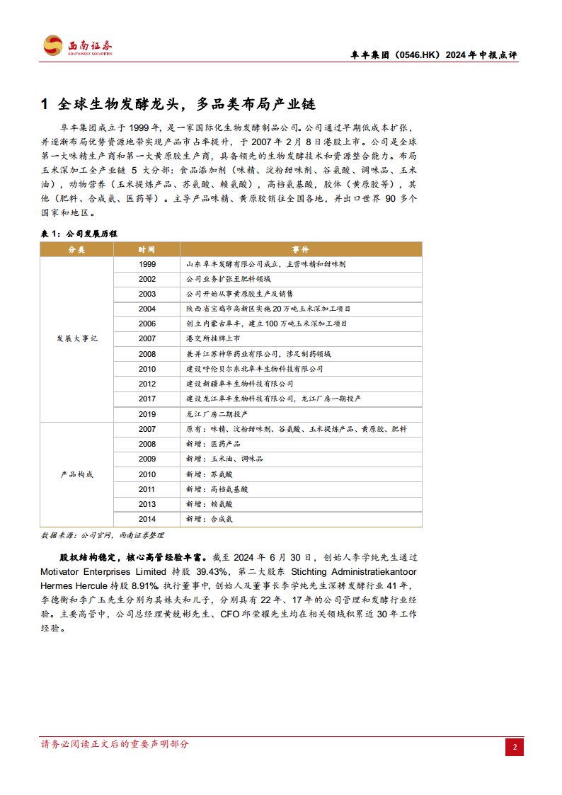 阜丰集团(00546):生物发酵龙头,多品类蓄势待发
