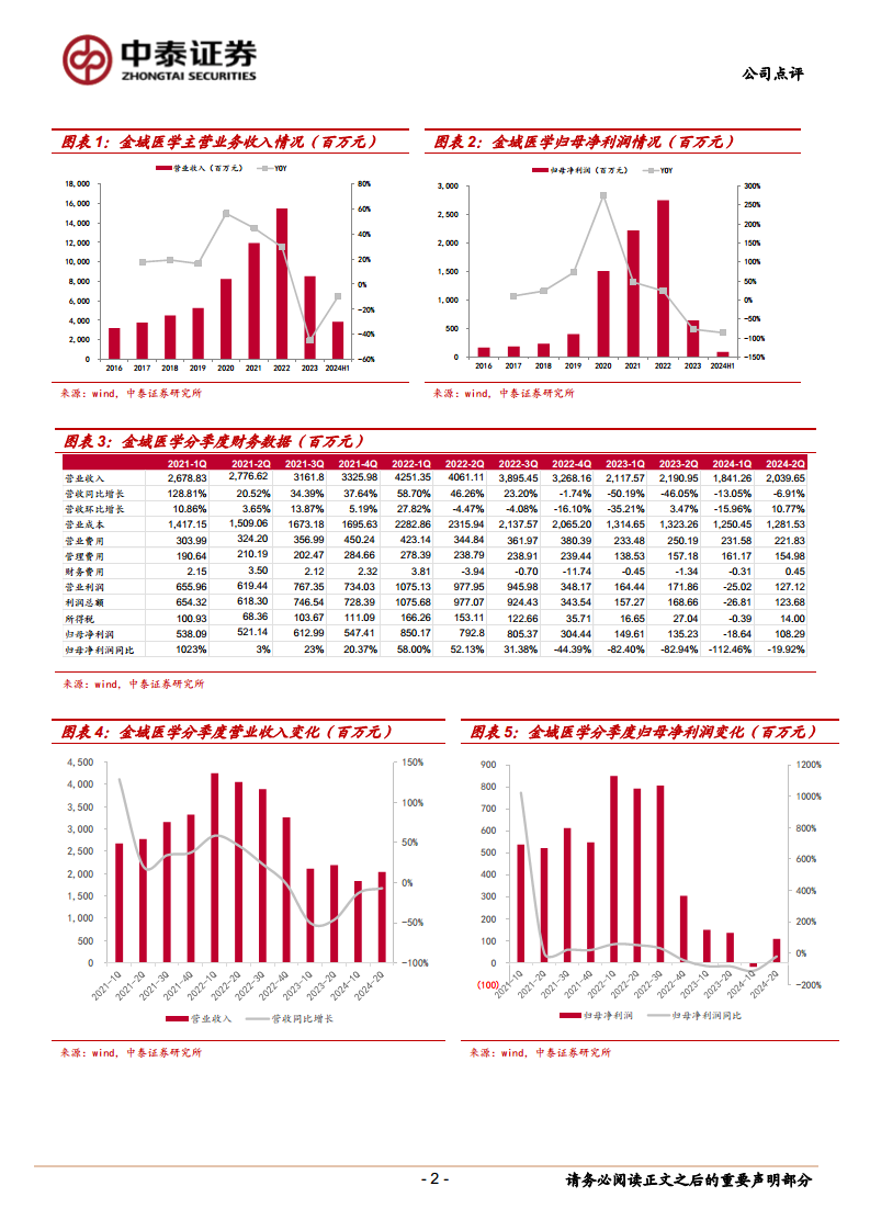 金域医学在2024年上半年面临显著的业绩下滑,营业收入和归母净利润同比均出现大幅下降,主要受医疗整顿、DRG/DIP政策推广、诊断试剂集采等外部政策压力以及同期新冠业务高基数和应收款减值计提等因素影响。尽管短期盈利能力受到市场竞争加剧和规模效应减弱的冲击,但公司核心业务表现出稳健性,且毛利率在第二季度环比显著改善,预示着未来复苏的良好趋势。