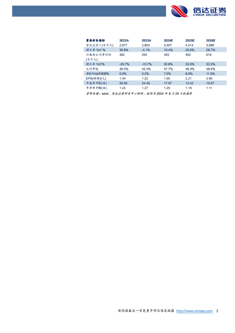 分析师预计公司2024-2026年营业收入分别为34.07亿元、44.14亿元、56.80亿元,同比增速分别为19.4%、29.6%、28.7%。预计归母净利润分别为3.45亿元、4.62亿元、6.16亿元,同比分别增长35.8%、33.9%、33.3%。对应当前股价,PE分别为18倍、13倍、10倍。分析师维持“买入”投资评级。