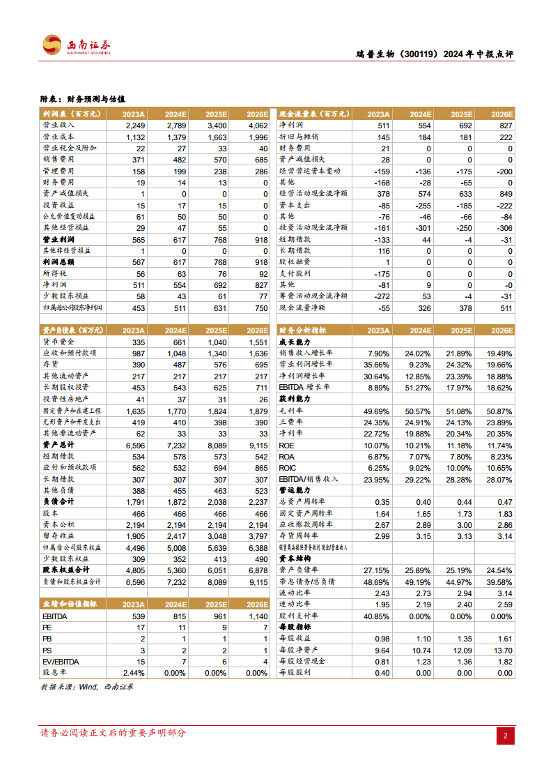 基于对公司未来盈利能力的预测和市场估值,分析师维持对瑞普生物的“买入”评级。