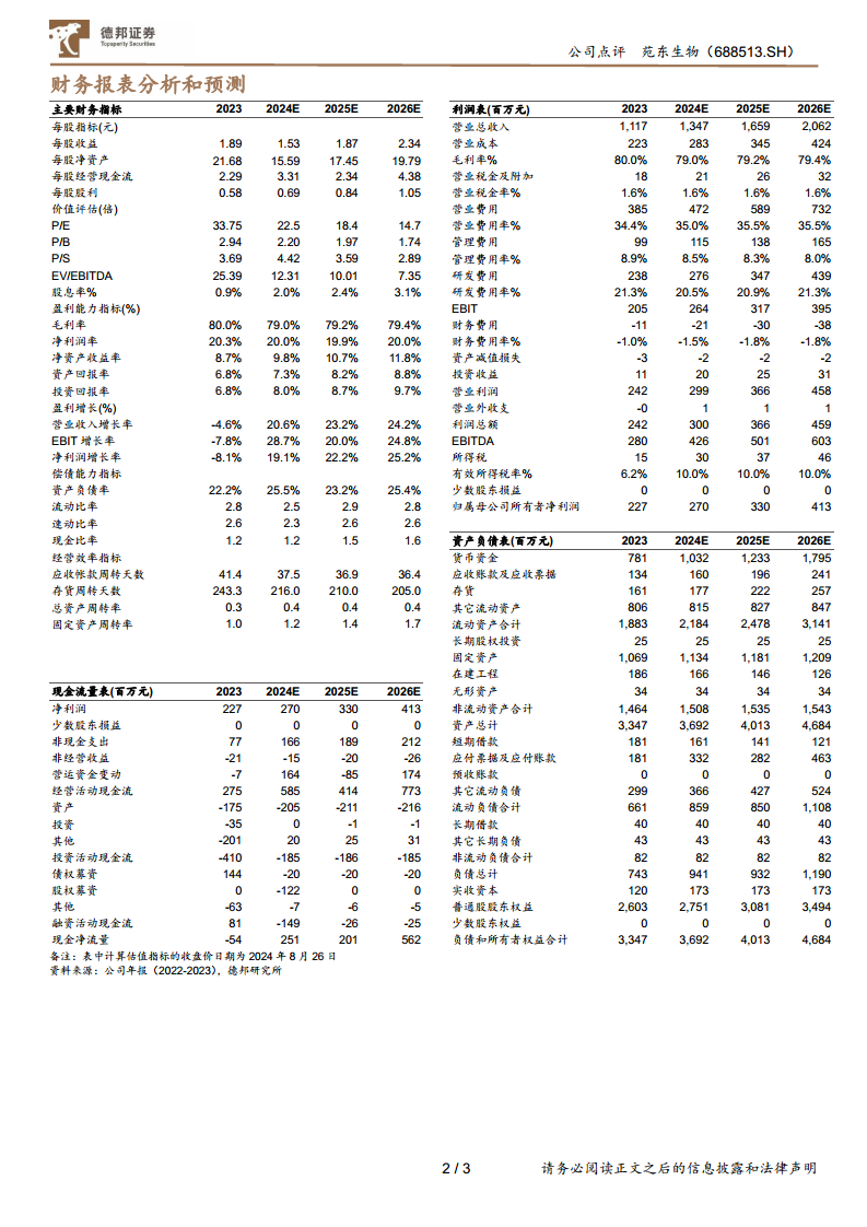 鉴于公司的增长潜力和估值水平,分析师维持对苑东生物的“买入”评级。同时,报告也提示了潜在风险,包括研发进度不及预期、国际化业务不及预期以及新品推广不及预期等。
