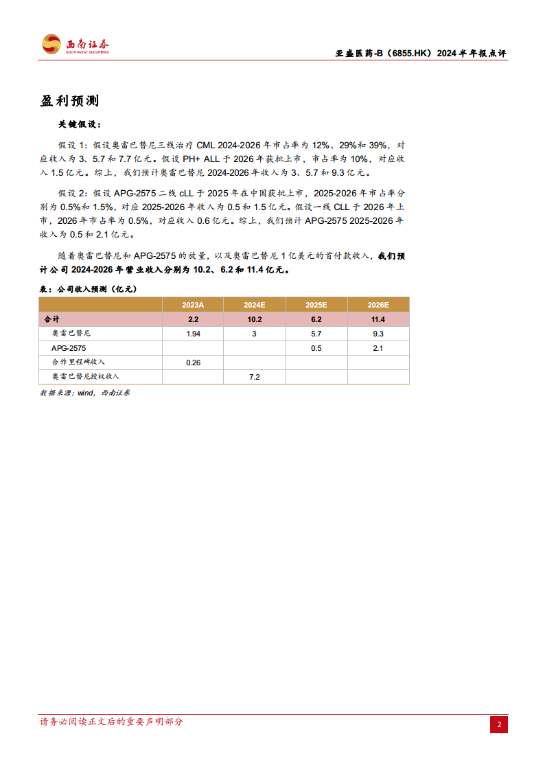 亚盛医药在2024年上半年实现了收入和盈利的历史性突破,财务状况显著改善。其核心产品耐立克通过扩大市场准入和获得权威指南推荐,商业化进程稳步推进,并有望在2025年通过医保纳入进一步扩大市场覆盖。同时,创新管线APG-2575在国内和国际市场均取得重大进展,即将迎来商业化和全球注册里程碑。公司未来几年将有多项关键催化剂,包括新产品上市、新适应症纳入医保以及多项全球注册临床试验的推进,这些因素有望共同推动亚盛医药的研发和商业化能力迈上新台阶,实现持续增长。