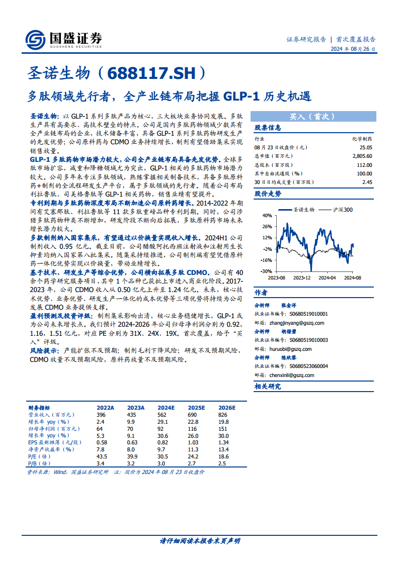 圣诺生物(688117):多肽领域先行者,全产业链布局把握GLP-1历史机遇