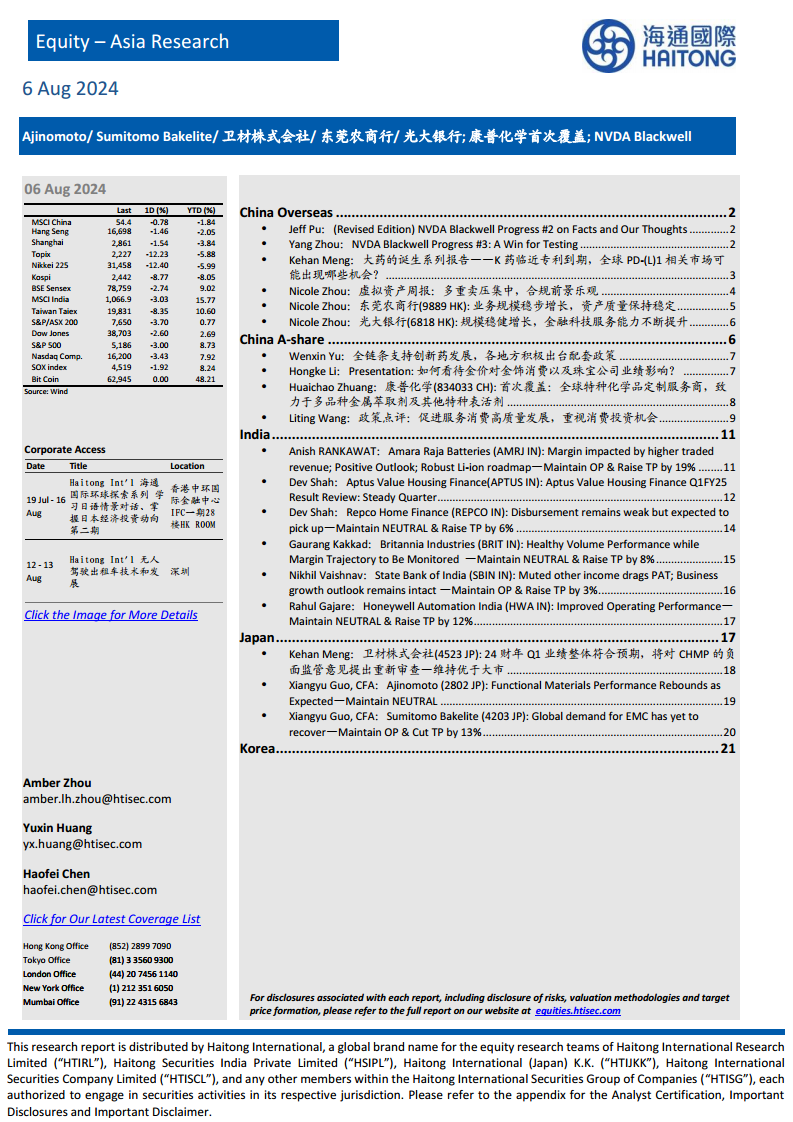 - 营收影响: 尽管市场担忧B100/B200问题可能导致2024年第四季度营收减少约50亿美元,但H200订单的增加预计将抵消负面影响,目前对英伟达的营收/盈利预测无负面影响。