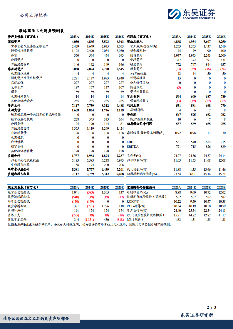 鉴于公司上半年业绩在高基数下有所承压,分析师将公司2024-2026年归母净利润预测由原先的6.5/7.8/9.4亿元下调至5.7/6.6/7.5亿元。当前市值对应PE分别为15倍、13倍和11倍。考虑到公司较强的研发能力以及学术转型后具有销售弹性,分析师维持对康缘药业的“买入”评级。
