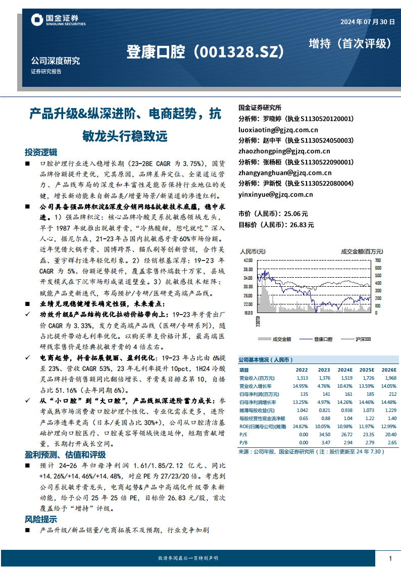 登康口腔(001328):产品升级、纵深进阶、电商起势,抗敏龙头行稳致远