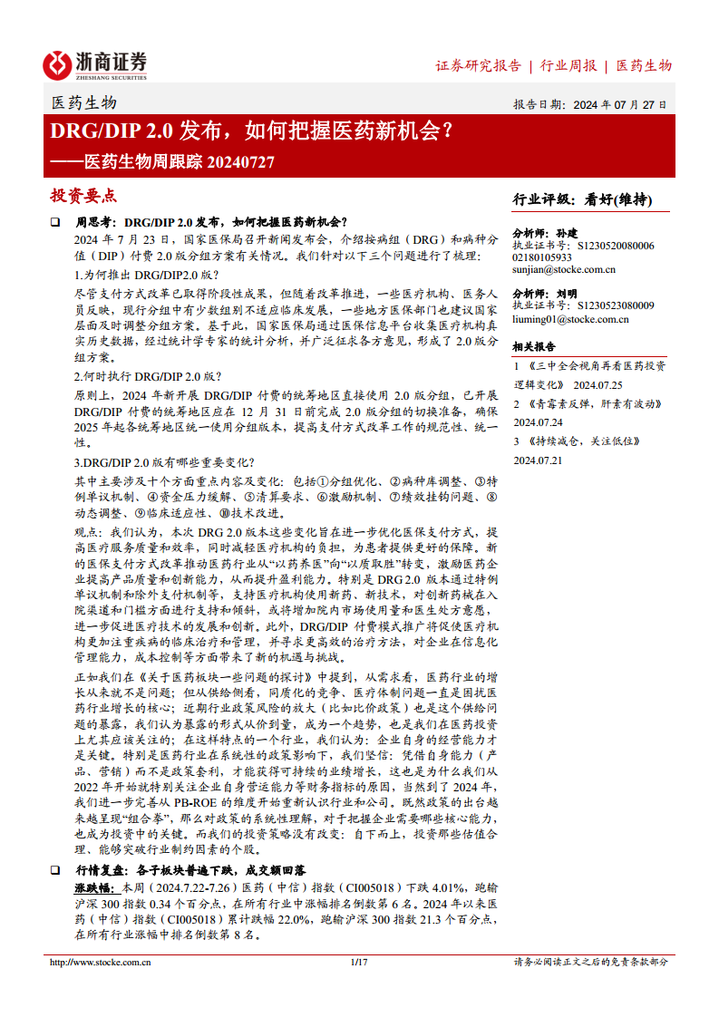 医药生物周跟踪:DRG DIP2.0发布,如何把握医药新机会?