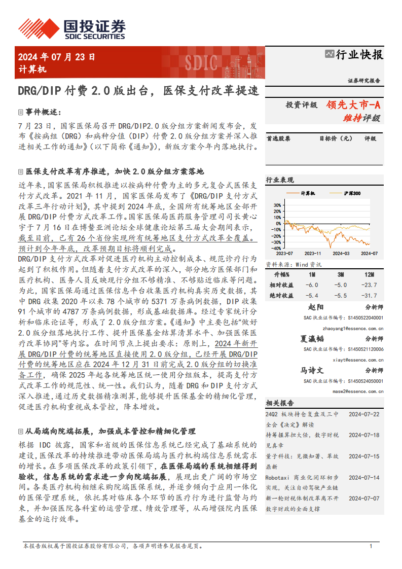 计算机:DRG DIP付费2.0版出台,医保支付改革提速
