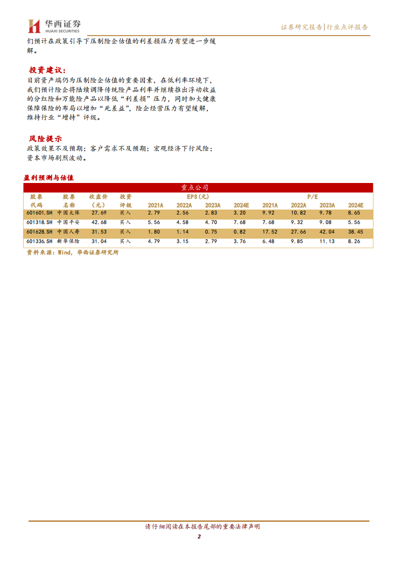 监管部门明确提出将深化改革,增强保险业高质量发展动力。通过切实转变发展方式、改革销售体系、强化资产负债联动以及夯实发展基础等措施,旨在优化保险机构的经营环境,有效防范利差损风险,并推动行业实现降本增效和高质量发展。预计在政策引导下,压制险企估值的利差损压力有望进一步缓解,行业经营压力将得到缓解,维持行业“增持”评级。