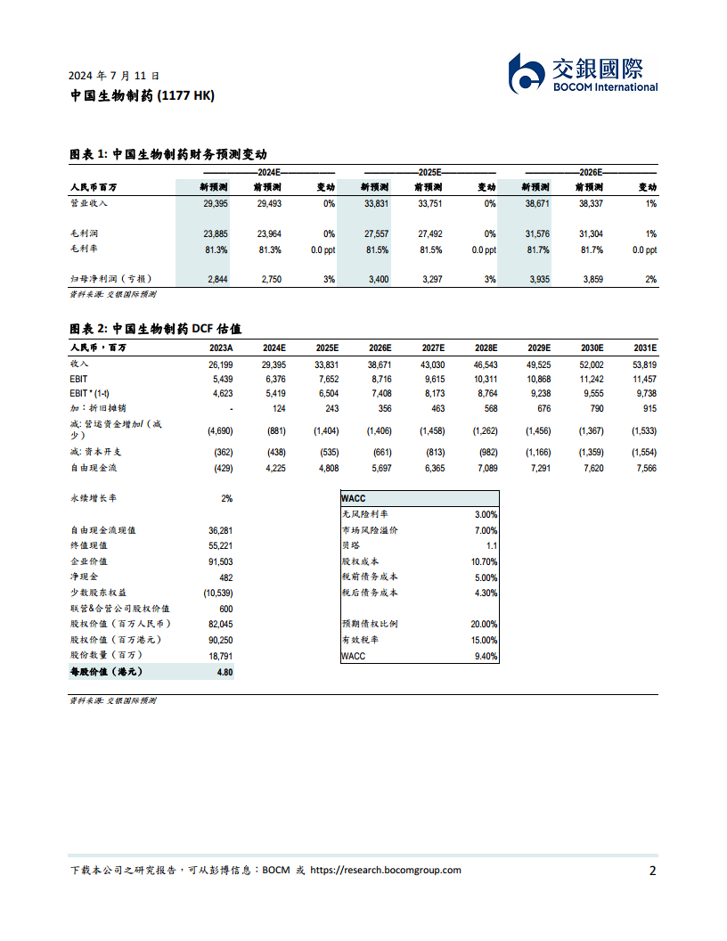 交银国际基于对公司业绩复苏能见度的提升,上调了中国生物制药2024-2026年的净利润预测2-3%。