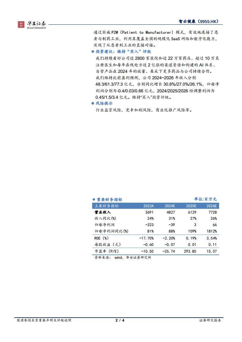 智云健康此次独家引进注射用伊洛前列素溶液,是其在慢病管理领域的重要战略布局,成功切入中国肺动脉高压这一高增长、未满足的治疗市场。公司凭借其强大的数字化平台和P2M模式,有望高效推动该创新药物的商业化,填补国内市场空白。尽管面临行业监管、市场竞争和商业化推广等风险,但基于其广泛的渠道资源、AI体系以及积极的财务预测,智云健康有望实现营收的持续增长和盈利能力的显著提升,巩固其在数字化慢病管理解决方案提供商的领先地位。