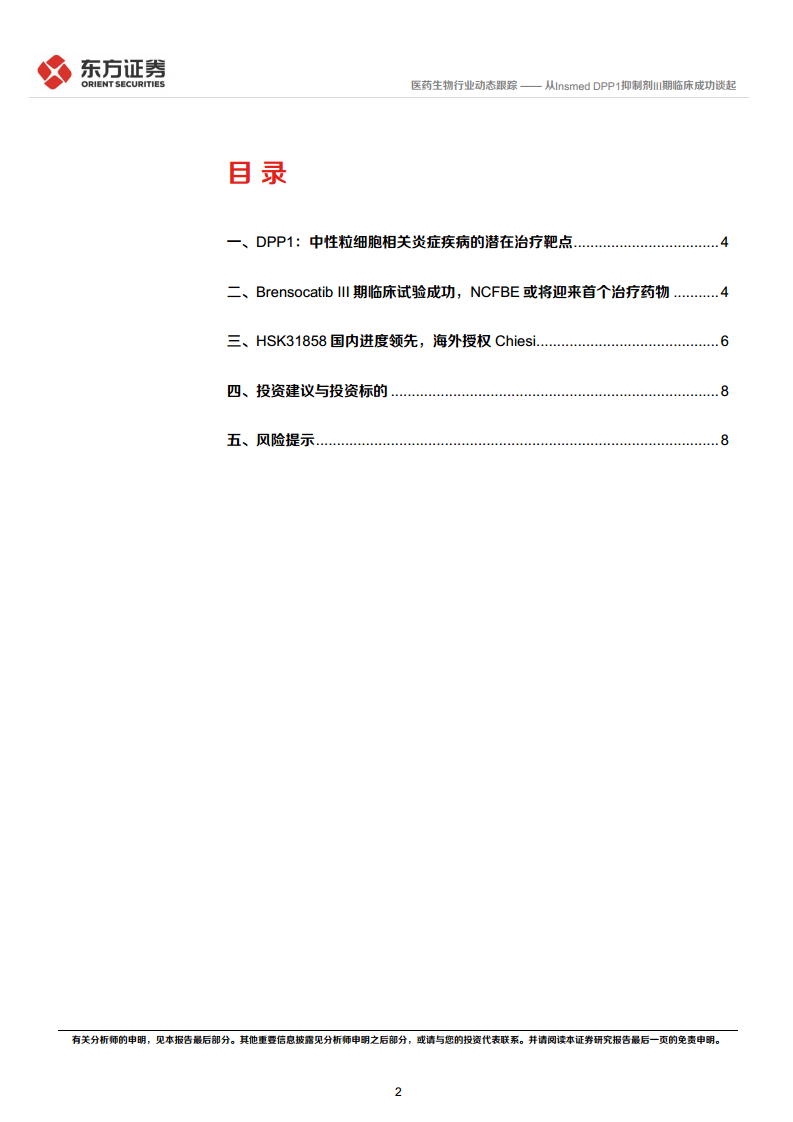 医药行业周专题:从InsmedDPP1抑制剂III期临床成功谈起