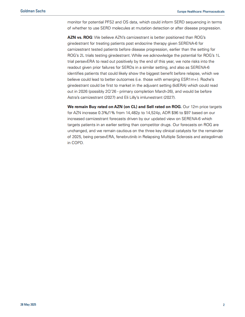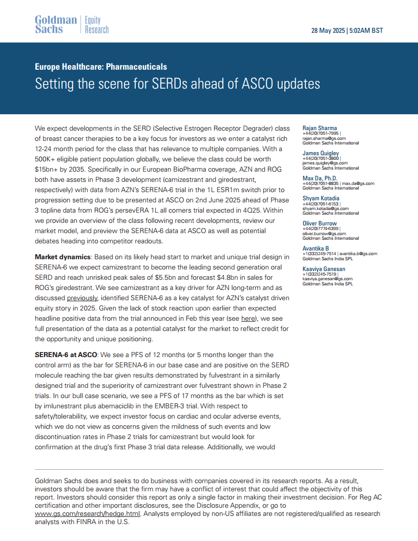 欧洲医疗保健:制药-在ASCO更新之前为SERD设定场景