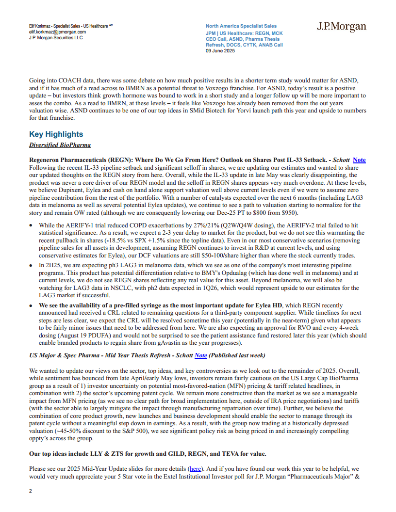 摩根大通 美国医疗保健:再生元制药(REGN)重审、Ascendis Pharma(ASND)、制药论文更新、Docusign(DOCS)