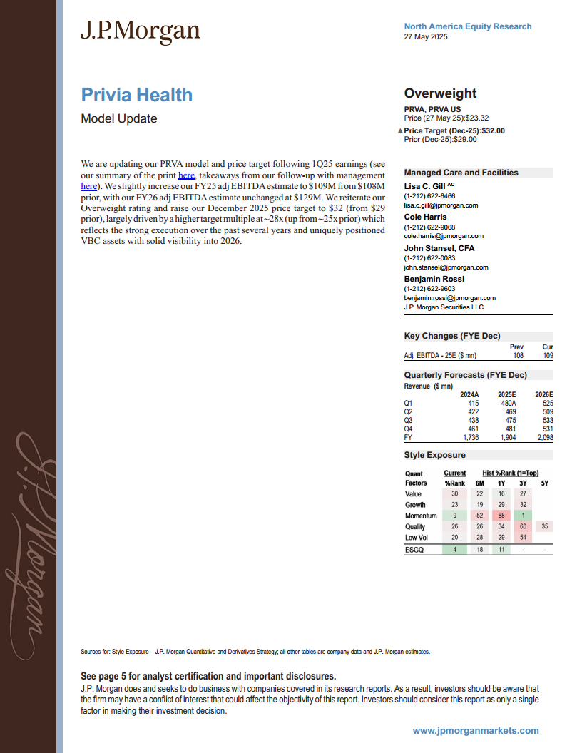 普瑞维亚健康(PRVA):Privia Health模型更新