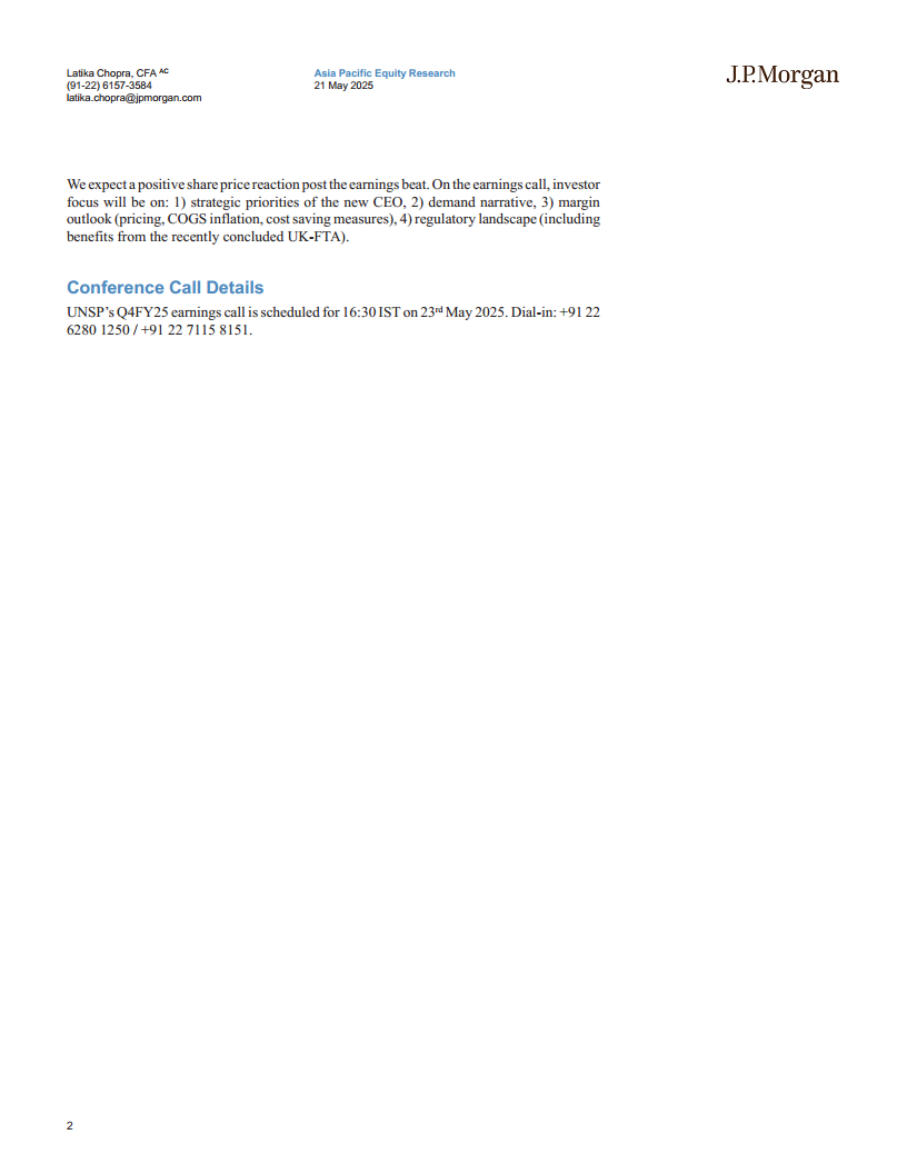 鉴于公司优于预期的利润表现,市场普遍预计将上调对UNSP的盈利预测。尽管公司在印度酒类市场具有结构性增长潜力,且在品牌组合、高端化和成本节约方面表现积极,但J.P. Morgan认为这些利好因素已在当前股价中得到充分体现,因此维持“中性”评级,并等待更好的入场机会。报告同时详细分析了影响公司评级和目标价的潜在上行与下行风险。