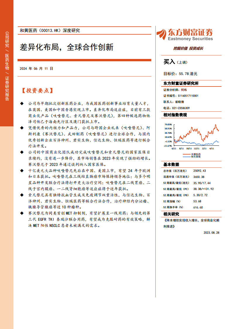 和黄医药(00013):深度研究:差异化布局,全球合作创新