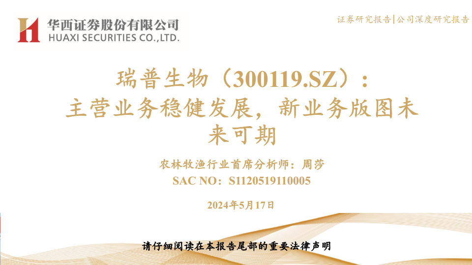 瑞普生物(300119):主营业务稳健发展,新业务版图未来可期