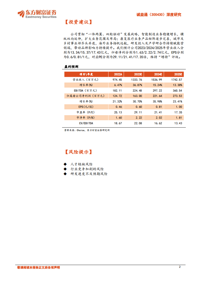 诚益通(300430)凭借“一体两翼,双轮驱动”的发展战略,在智能制造和康复医疗设备两大核心业务板块均实现稳健增长。公司营收从2017年的5.55亿元增至2022年的9.75亿元,年复合增长率达11.93%。2023年前三季度,营收和归母净利润分别同比增长33.57%和69.68%,显示出强劲的盈利修复能力。