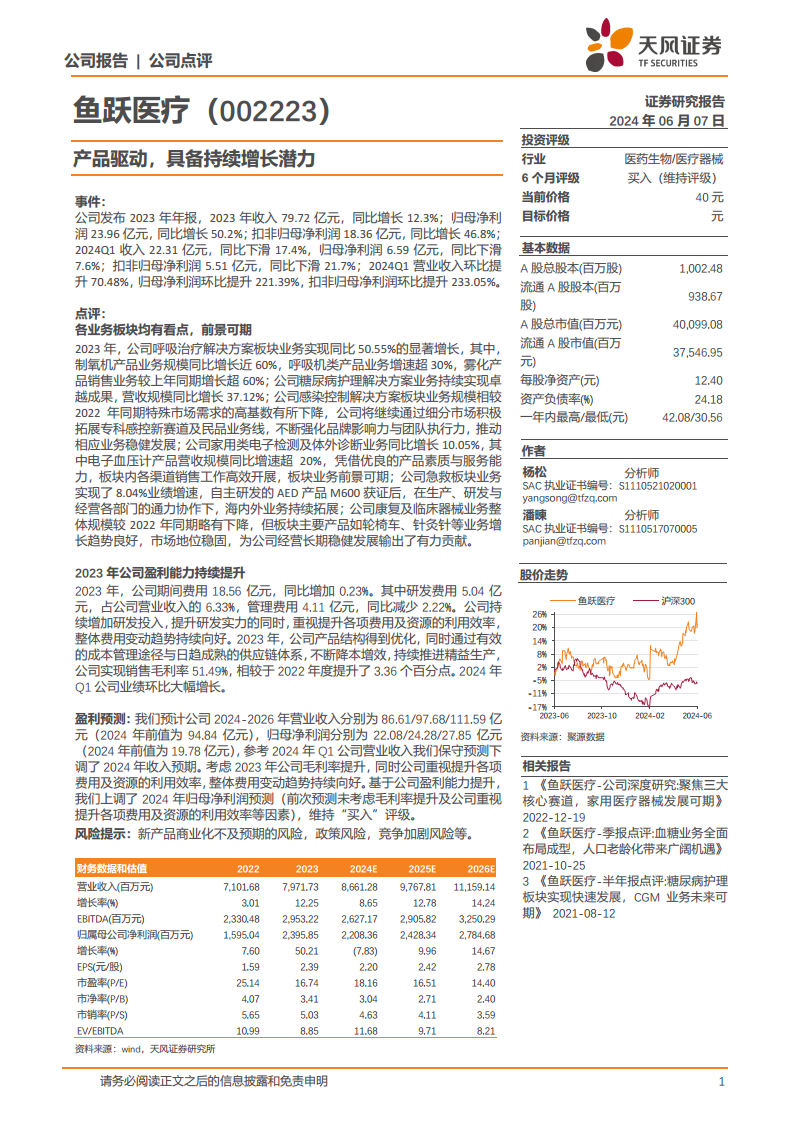 鱼跃医疗(002223):产品驱动,具备持续增长潜力