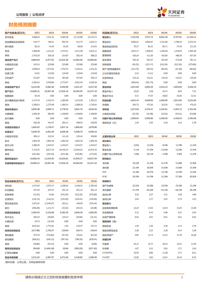 基于公司2023年的良好表现和2024年第一季度的环比复苏,天风证券对鱼跃医疗的盈利进行了预测。预计公司2024-2026年营业收入分别为86.61亿元、97.68亿元和111.59亿元。归母净利润分别为22.08亿元、24.28亿元和27.85亿元。考虑到2023年公司毛利率的提升以及对各项费用和资源利用效率的重视,分析师上调了2024年归母净利润预测,并维持“买入”评级。
